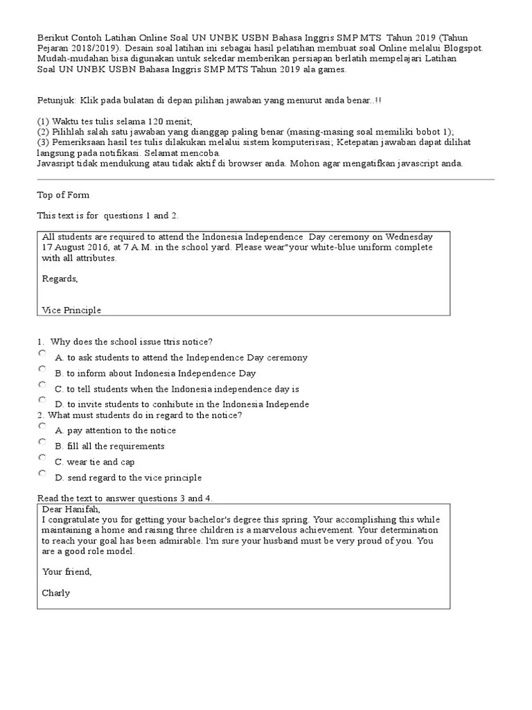 Contoh soal latihan bahasa indonesia untuk unbk dan usbn tingkat smp.